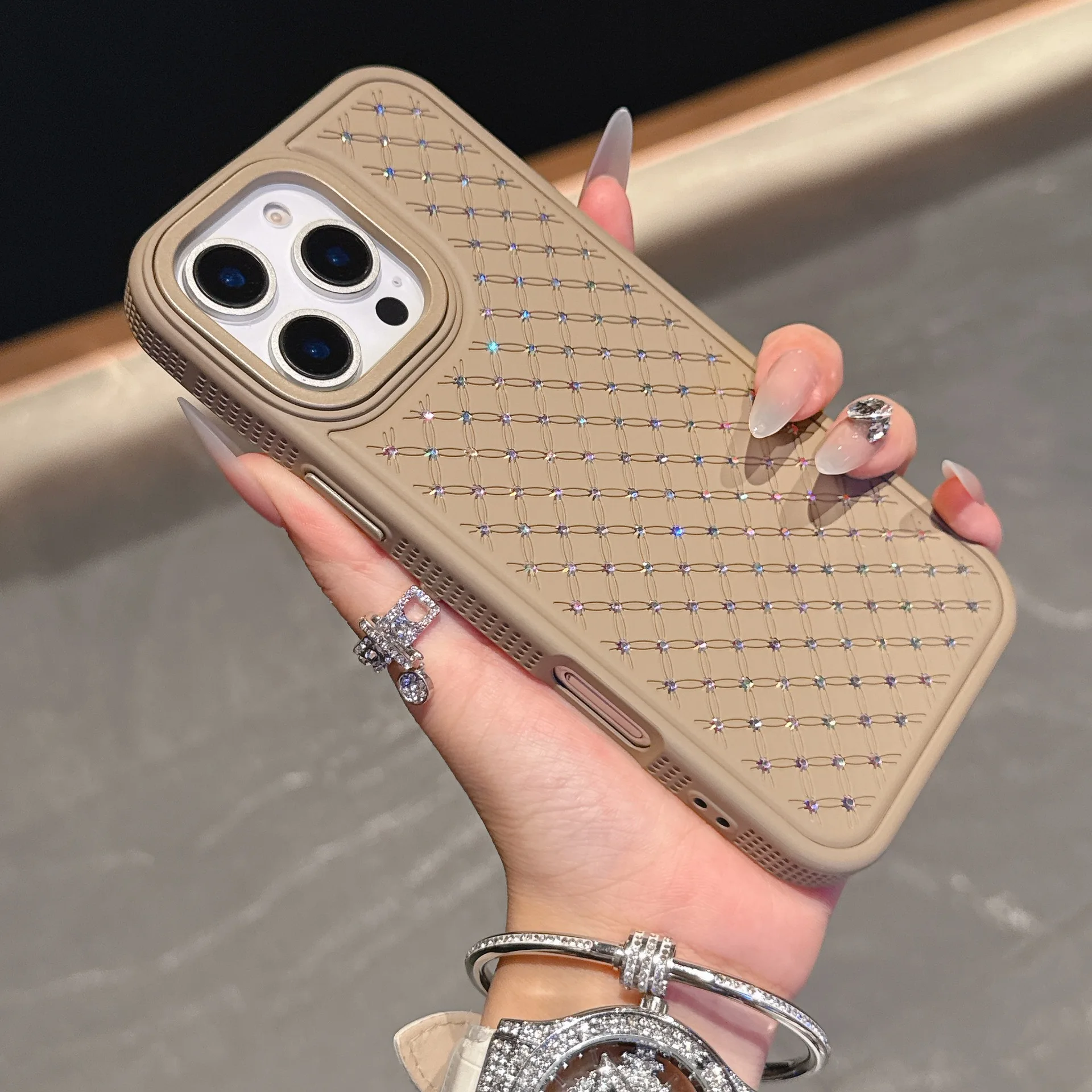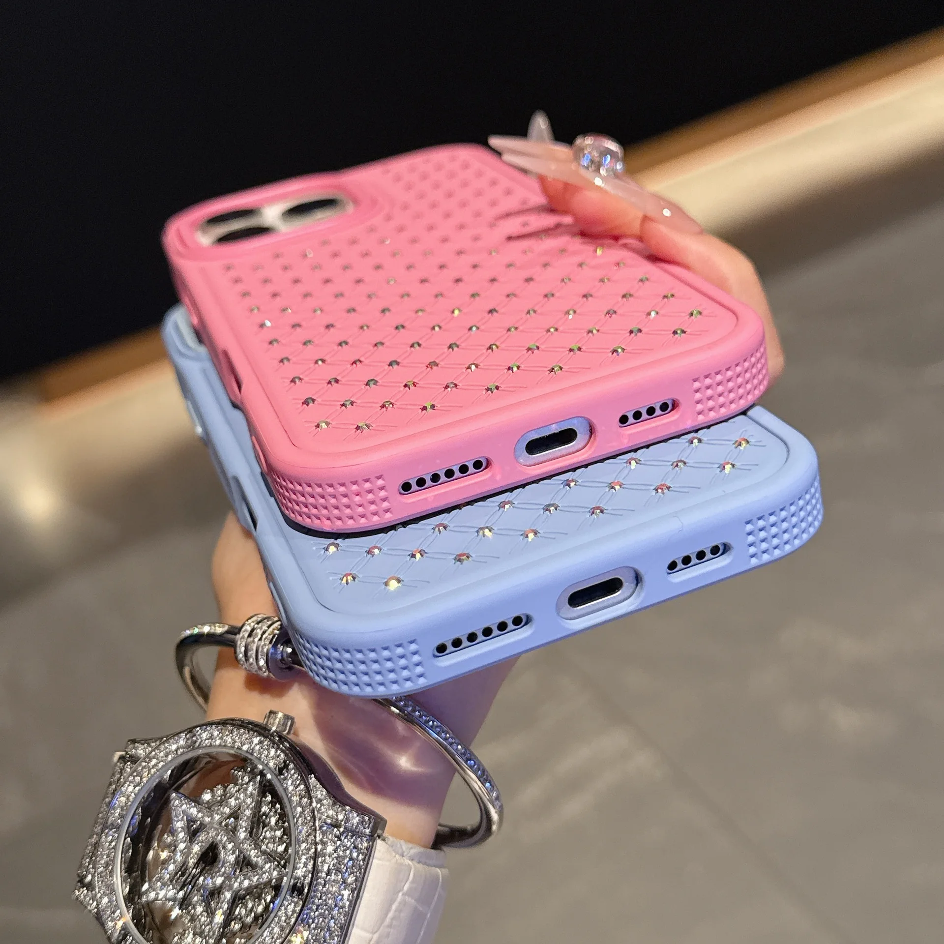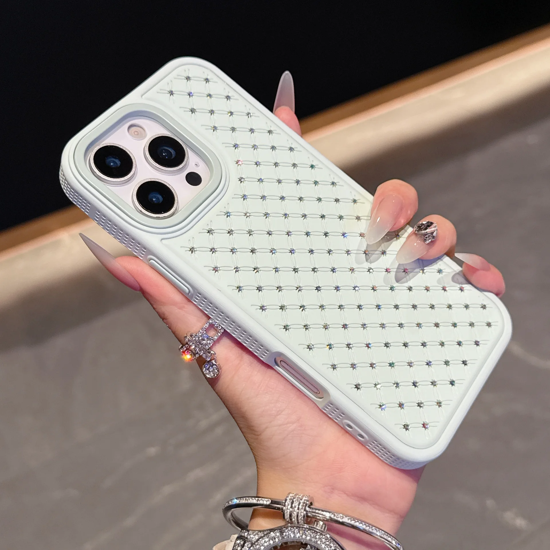 Luxe Pure Color Starry Sky Diamond Leather Lozenge Grid Sparkling Back Phone Covers for iphone 17/16/15/14/13/12pro max